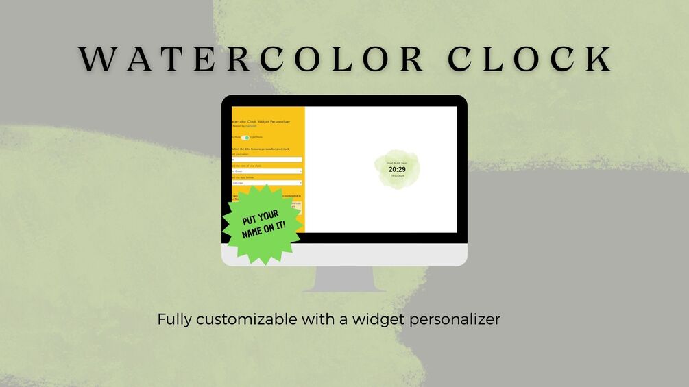 You'll get the link to a personalizer webpage where you'll be able to change the name, the format of date and even the color of the clock to match your Notion creations.